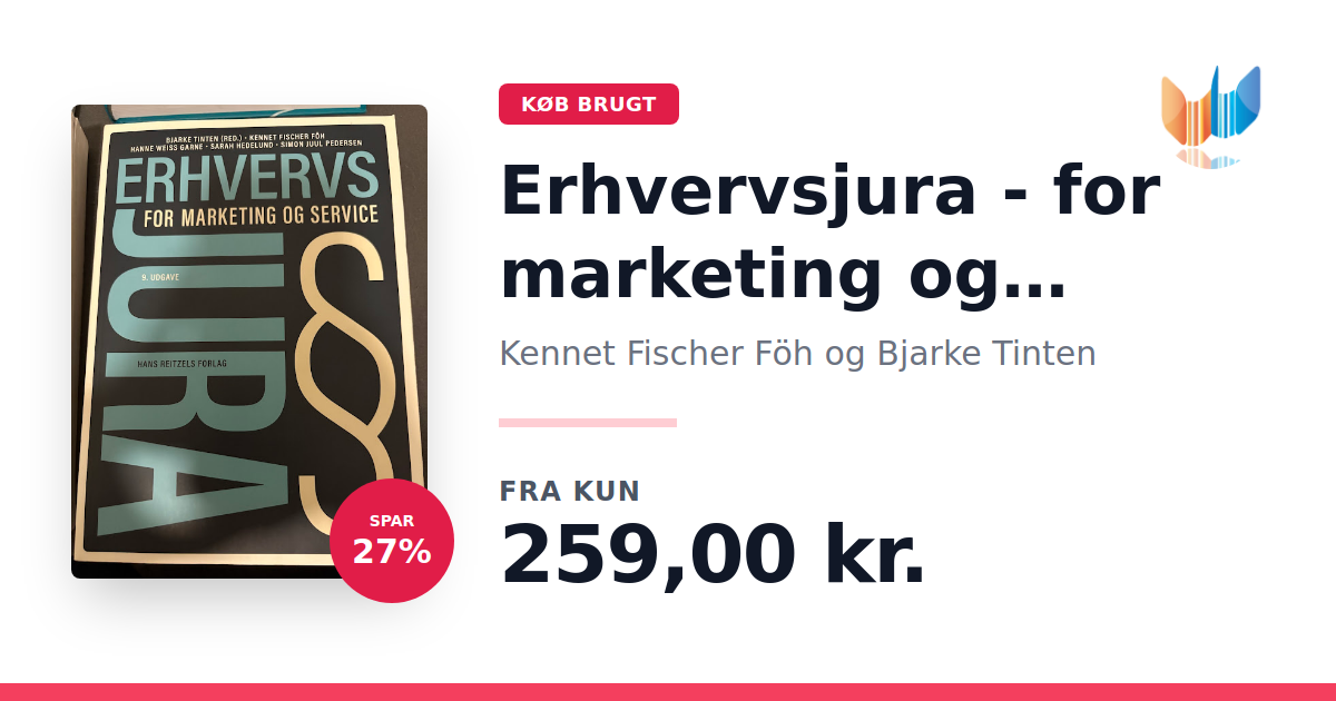 Erhvervsjura – for marketing og service, 9. udgave, er en fagligt solid og pædagogisk lærebog designet til studerende på markedsførings-, service- og handelsøkonomuddannelserne. Bogen er tilpasset de nyeste studieordninger og giver et solidt grundlag for forståelsen af erhvervsjura med særlig relevans inden for marketing og service. Bogen behandler alle de centrale juridiske områder, herunder juridisk metode, retssystemet, aftaleret, køberet, erstatningsret, produktansvar, selskabsret, markedsføringsret, e-handelsret, varemærkeret, persondataret samt servicejura og HR-jura. Sammen med lærebogen følger en opdateret og omfattende lovsamling – Erhvervsjura – lovsamling 2023-2024 – samt en ny opgavesamling, der understøtter læring og faglig fordybelse.