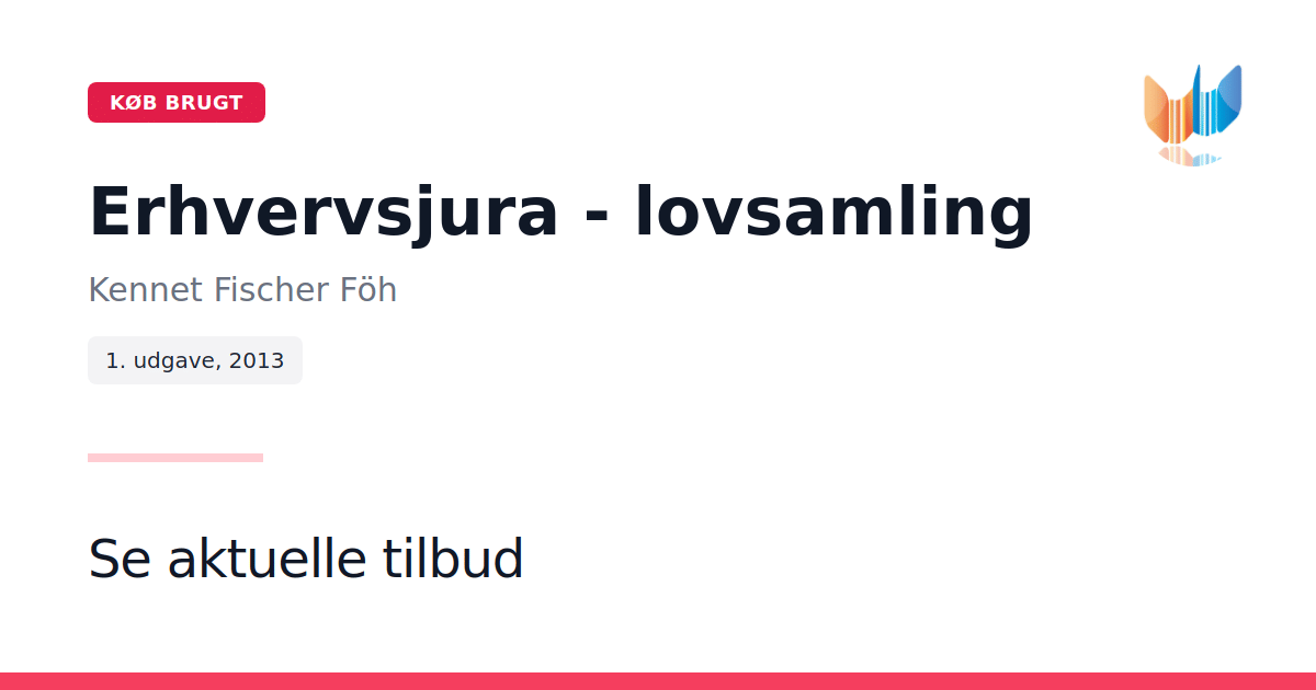 Erhvervsjura – lovsamling 2013-2014 er en nøje udarbejdet samling af erhvervsretlig lovgivning, der fungerer som et uundværligt supplement til lærebogen "Erhvervsjura – videregående uddannelser". Denne lovsamling samler et bredt spektrum af retskilder og giver en grundig gennemgang af det erhvervsretlige område. Bogen dækker pensum for en række erhvervsuddannelser, herunder finansøkonom, markedsføringsøkonom og andre KVU-uddannelser samt akademiuddannelsen i finansiel rådgivning. Med bidrag fra Kennet Fischer Föh, Lene Mandøe og Bjarke Tinten er denne første udgave et værdifuldt redskab for studerende og undervisere, der ønsker en solid forståelse af erhvervsjuridiske problemstillinger.