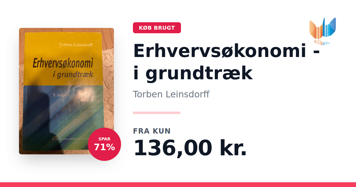Lige nu kan du købe "Erhvervsøkonomi - i grundtræk" af Torben Leinsdorff til kun 136,00 kr. Du sparer hele 71% af nyprisen! Bogen du ser her er brugt, og i god stand. Vi har i øjeblikket 2 eksemplarer til salg af "Erhvervsøkonomi - i grundtræk", så husk at se de forskellige udgaver.