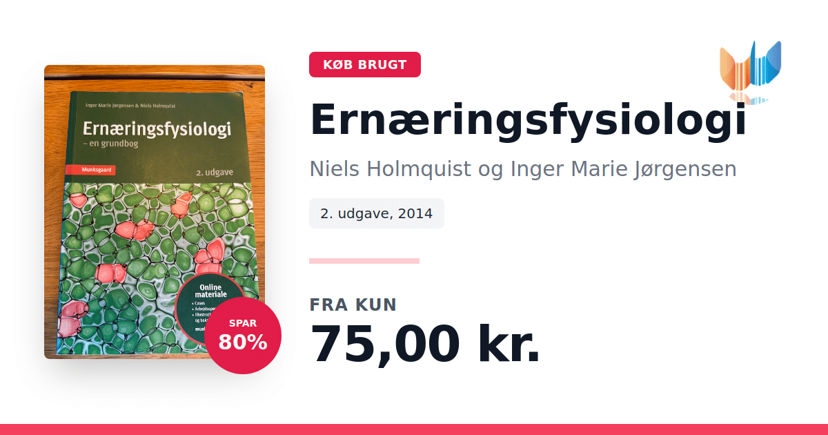 Lige nu kan du købe "Ernæringsfysiologi" af Niels Holmquist og Inger Marie Jørgensen til kun 75,00 kr. Du sparer hele 80% af nyprisen! Bogen du ser her er brugt, og i perfekt stand. Vi har i øjeblikket 5 eksemplarer til salg af "Ernæringsfysiologi", så husk at se de forskellige udgaver.