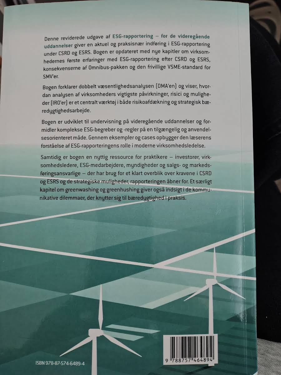 Den anden og reviderede udgave af "ESG-rapportering - for de videregående uddannelser" tilbyder en aktuel og praksisnær introduktion til arbejdet med ESG-rapportering i henhold til CSRD og ESRS. Lærebogen er skræddersyet til undervisningsbrug og formår at gøre komplekse regler og begreber både letforståelige og anvendelsesorienterede. Ved hjælp af relevante cases og eksempler opnår læseren en stærk forståelse for ESG-rapporteringens afgørende betydning i moderne virksomhedsledelse. I denne 2025-udgave er der tilføjet nye kapitler, som belyser virksomhedernes første praktiske erfaringer med CSRD og ESRS. Bogen dækker desuden konsekvenserne af Omnibuspakken samt den frivillige VSME-standard for små og mellemstore virksomheder (SMV'er). Der lægges stor vægt på dobbelt væsentlighedsanalysen (DMA), og det forklares indgående, hvordan afdækningen af en virksomheds påvirkninger, risici og muligheder (IRO'er) fungerer som et centralt redskab for strategisk bæredygtighed og risikostyring. Læseren klædes også på til at håndtere kommunikative dilemmaer omkring bæredygtighed via et specifikt kapitel om greenwashing og greenhushing. Selvom bogen primært henvender sig til studerende, er den i lige så høj grad et yderst værdifuldt værktøj for praktikere på arbejdsmarkedet. Virksomhedsledere, investorer, ESG-medarbejdere, myndigheder samt salgs- og markedsføringsansvarlige vil her finde et overskueligt overblik over de aktuelle regelsæt og få indsigt i de mange strategiske muligheder, som den nye rapporteringspraksis fører med sig.