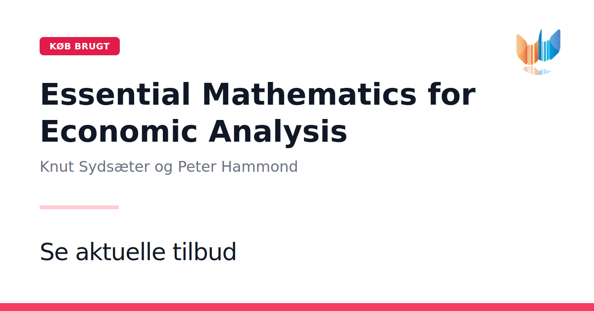Essential Mathematics for Economic Analysis giver økonomistuderende en solid og systematisk indføring i de matematiske værktøjer, der er uundværlige i både mikro- og makroøkonomi. Bogen er skrevet af Knut Sydsæter og Peter Hammond med fokus på klarhed og relevans for den studerende. Indholdet spænder fra grundlæggende algebraiske metoder til mere avancerede emner som differentialregning, integralregning og optimering. Hvert kapitel bygger logisk videre på det foregående og sikrer en glidende overgang mellem de centrale matematiske discipliner. Med talrige eksempler, øvelser og illustrative figurer styrkes forståelsen, samtidig med at evnen til at anvende teorierne på konkrete økonomiske problemstillinger udvikles. Bogen egner sig både som kursuslitteratur og som opslagsværk i selvstændigt arbejde. Udgivet i 2006 af Pearson Education, denne paperback på 730 sider fungerer som en grundig reference, der støtter den studerendes læring og giver et solidt fundament i matematik for økonomer.