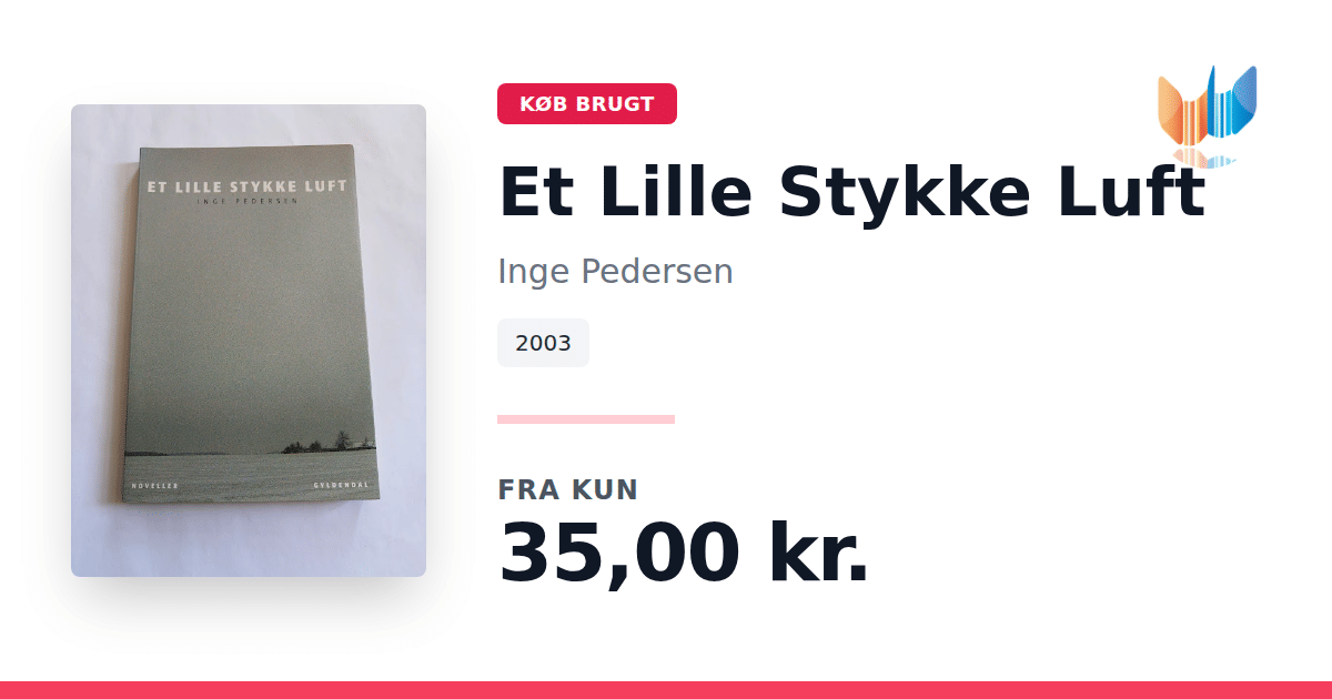 Lige nu kan du købe "Et Lille Stykke Luft" af Inge Pedersen til kun 35,00 kr. Bogen du ser her er brugt, og i perfekt stand. Vi har i øjeblikket kun et enkelt eksemplar til salg af "Et Lille Stykke Luft", så slå til mens du kan!