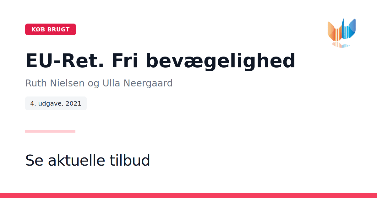 Få et solidt fundament i EU-rettens principper og regler om fri bevægelighed med den fjerde udgave af "EU-Ret. Fri bevægelighed". Forfatterne, professor dr.jur. Ruth Nielsen og professor, Ph.d. Ulla Neergaard, giver en indsigtsfuld fremstilling af de dynamikker og den grundstruktur, der kendetegner EU’s økonomisk-juridiske forfatning. Bogen dykker ned i emner som EU-Domstolens fortolkningsmetoder, varers fri bevægelighed, fri udveksling af tjenesteydelser, etableringsfrihed og arbejdskraftens bevægelighed. Derudover behandles unionsborgerskab og regler for tredjelandsstatsborgere, understøttet af gengivelser af centrale bestemmelser, domspræmisser og afgørende litteratur. Med sin klare formidling og systematiske opbygning fungerer bogen både som en lærebog og en håndbog for praktikere, der ønsker grundlæggende indsigt i EU-retten. Den er særligt velegnet til studier i faget "EU-ret" på jurauddannelsen og sikrer en praktisk og teoretisk forståelse af de vigtigste aspekter ved fri bevægelighed i EU.