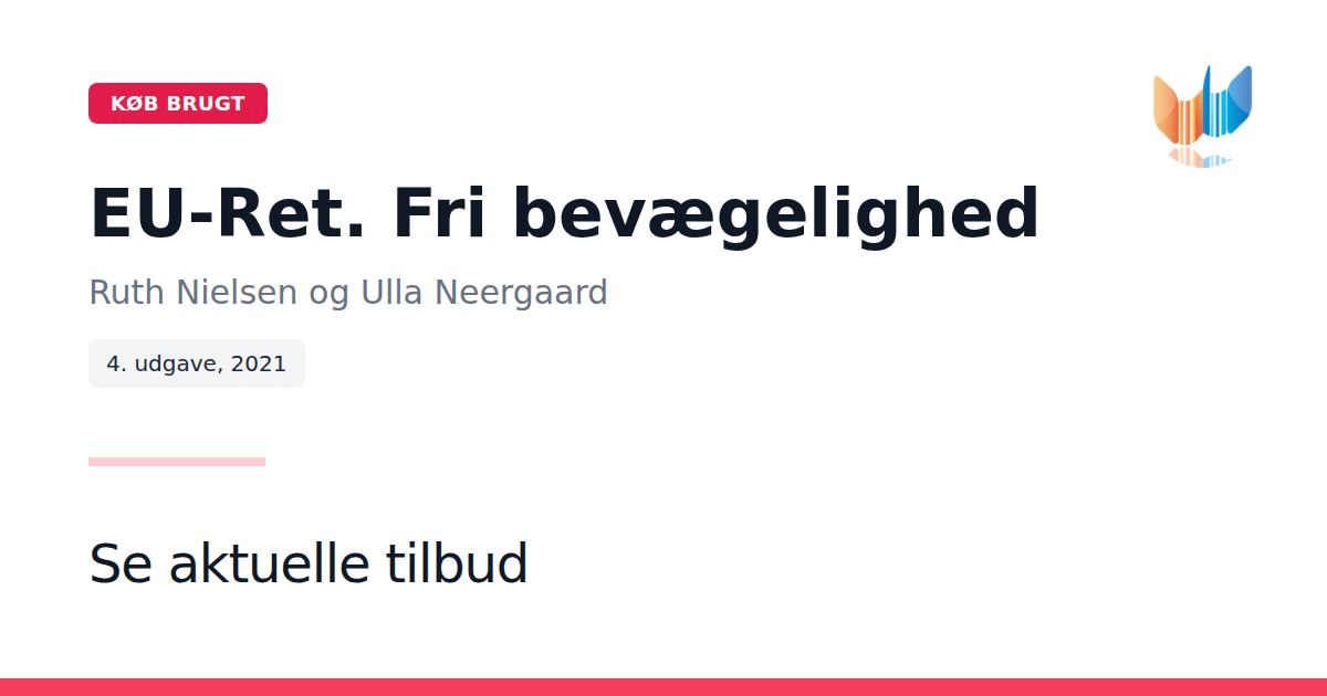 Få et solidt fundament i EU-rettens principper og regler om fri bevægelighed med den fjerde udgave af "EU-Ret. Fri bevægelighed". Forfatterne, professor dr.jur. Ruth Nielsen og professor, Ph.d. Ulla Neergaard, giver en indsigtsfuld fremstilling af de dynamikker og den grundstruktur, der kendetegner EU’s økonomisk-juridiske forfatning. Bogen dykker ned i emner som EU-Domstolens fortolkningsmetoder, varers fri bevægelighed, fri udveksling af tjenesteydelser, etableringsfrihed og arbejdskraftens bevægelighed. Derudover behandles unionsborgerskab og regler for tredjelandsstatsborgere, understøttet af gengivelser af centrale bestemmelser, domspræmisser og afgørende litteratur. Med sin klare formidling og systematiske opbygning fungerer bogen både som en lærebog og en håndbog for praktikere, der ønsker grundlæggende indsigt i EU-retten. Den er særligt velegnet til studier i faget "EU-ret" på jurauddannelsen og sikrer en praktisk og teoretisk forståelse af de vigtigste aspekter ved fri bevægelighed i EU.