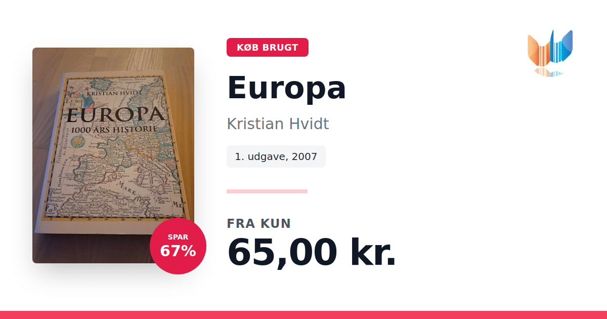 Lige nu kan du købe "Europa" af Kristian Hvidt til kun 65,00 kr. Du sparer hele 67% af nyprisen! Bogen du ser her er brugt, og i perfekt stand. Vi har i øjeblikket kun et enkelt eksemplar til salg af "Europa", så slå til mens du kan!
