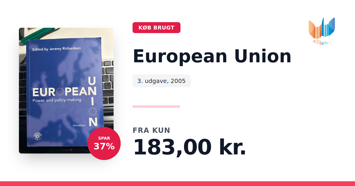 Lige nu kan du købe "European Union" til kun 183,00 kr. Du sparer hele 37% af nyprisen! Bogen du ser her er brugt, og i god stand. Vi har i øjeblikket kun et enkelt eksemplar til salg af "European Union", så slå til mens du kan!