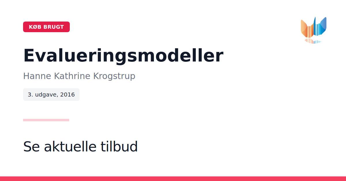 I "Evalueringsmodeller" præsenterer Hanne Kathrine Krogstrup, professor ved AAU, en grundig gennemgang af de mange evalueringsmodeller, der anvendes både i det offentlige og private, og som ejer stadigt større betydning. Bogen giver et overblik over både velkendte og nyere modeller, herunder klassisk effektevaluering, evidens, teoribaseret evaluering, contribution-analyse, præstationsmålinger, interaktiv evaluering, samarbejdsevaluering, participatorisk evaluering samt opbygning af evalueringskapacitet. Med en faglig og informativ tilgang tilbyder den tredje udgave, udgivet i 2016 af Gyldendal, læsere et solidt redskab til at forstå, anvende og vurdere de forskellige evalueringsperspektiver. Denne bog henvender sig til alle, der arbejder med evaluering og stræber efter et opdateret og internationalt perspektiv på evalueringsmodeller.