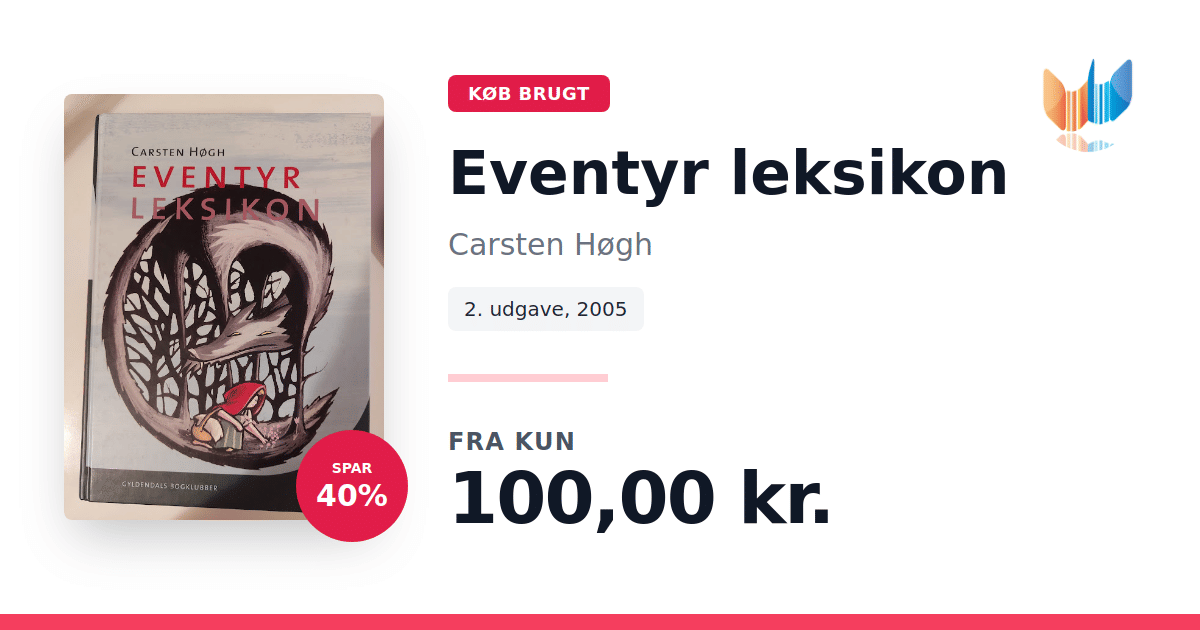 Lige nu kan du købe "Eventyr leksikon" af Carsten Høgh til kun 100,00 kr. Du sparer hele 40% af nyprisen! Bogen du ser her er brugt, og i perfekt stand. Vi har i øjeblikket 2 eksemplarer til salg af "Eventyr leksikon", så husk at se de forskellige udgaver.