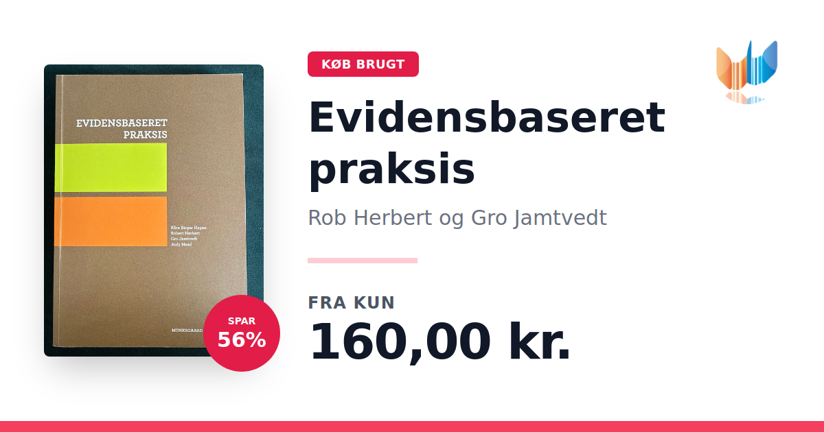 "Evidensbaseret praksis" er en trin-for-trin vejledning, der hjælper sundhedsprofessionelle med at omsætte videnskabelig forskning til praksis. Bogen giver en klar og grundig introduktion til, hvordan man systematisk søger efter og vurderer evidens – et afgørende redskab for at sikre en optimal behandling af patienten. Med fokus på de sundhedsvidenskabelige kernespørgsmål præsenterer forfatterne en konkret metode til at analysere forskningsdesign og -resultater. Selvom bogen især er rettet mod fysioterapeuter og ergoterapeuter, er dens indsigter og værktøjer også brugbare for læger, sygeplejersker, bioanalytikere og jordemødre. "Evidensbaseret praksis" giver læseren den nødvendige håndværksmæssige tilgang til at bygge bro mellem evidens i teori og praktisk klinisk anvendelse.
