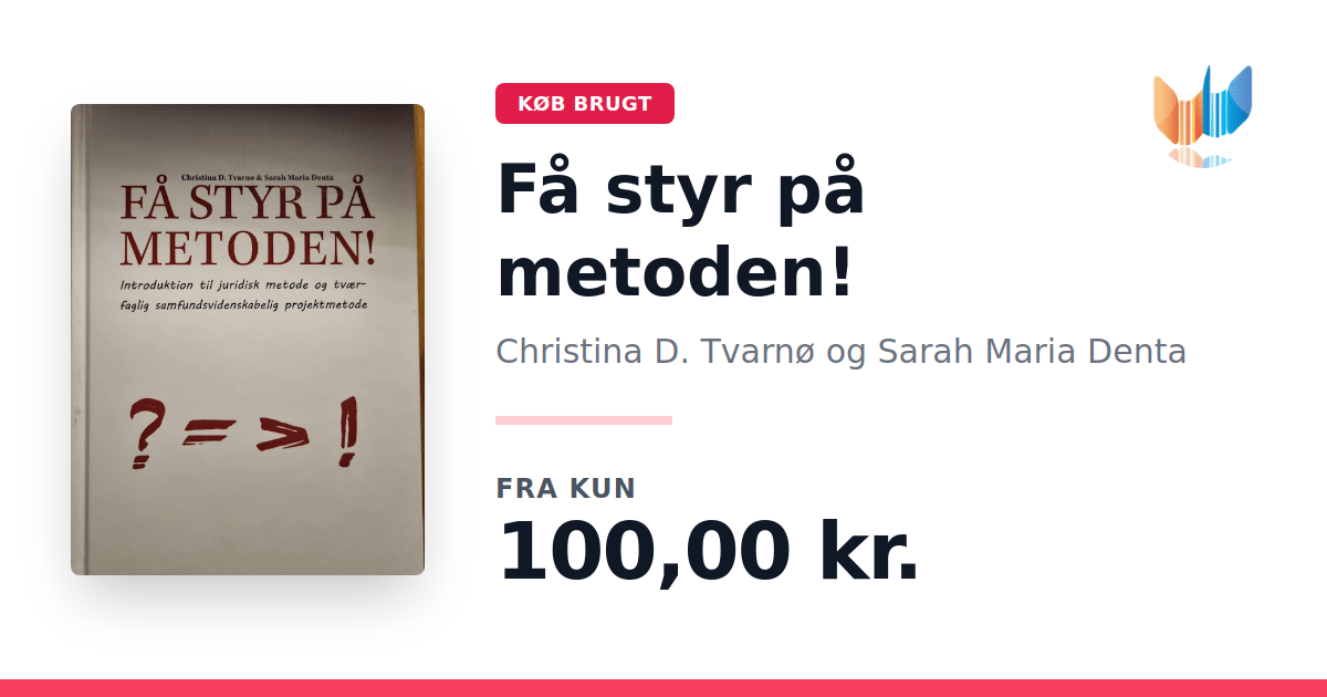Lige nu kan du købe "Få styr på metoden!" af Christina D. Tvarnø og Sarah Maria Denta til kun 100,00 kr. Bogen du ser her er brugt, og i perfekt stand. Vi har i øjeblikket kun et enkelt eksemplar til salg af "Få styr på metoden!", så slå til mens du kan!