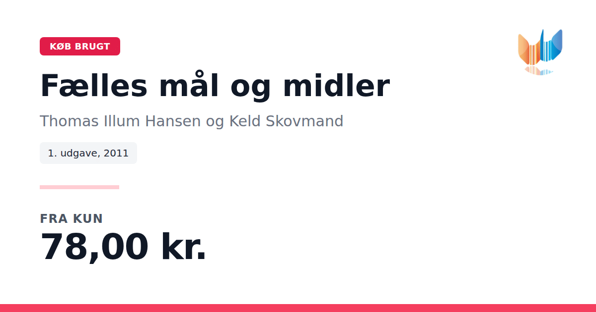 Lige nu kan du købe "Fælles mål og midler" af Thomas Illum Hansen og Keld Skovmand til kun 78,00 kr. Du sparer hele 61% af nyprisen! Bogen du ser her er brugt, og i perfekt stand. Vi har i øjeblikket 2 eksemplarer til salg af "Fælles mål og midler", så husk at se de forskellige udgaver.