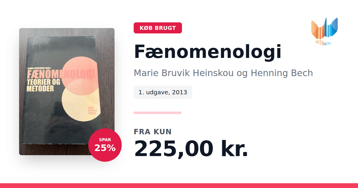 Lige nu kan du købe "Fænomenologi" af Marie Bruvik Heinskou og Henning Bech til kun 225,00 kr. Du sparer hele 25% af nyprisen! Bogen du ser her er brugt, og i perfekt stand. Vi har i øjeblikket kun et enkelt eksemplar til salg af "Fænomenologi", så slå til mens du kan!