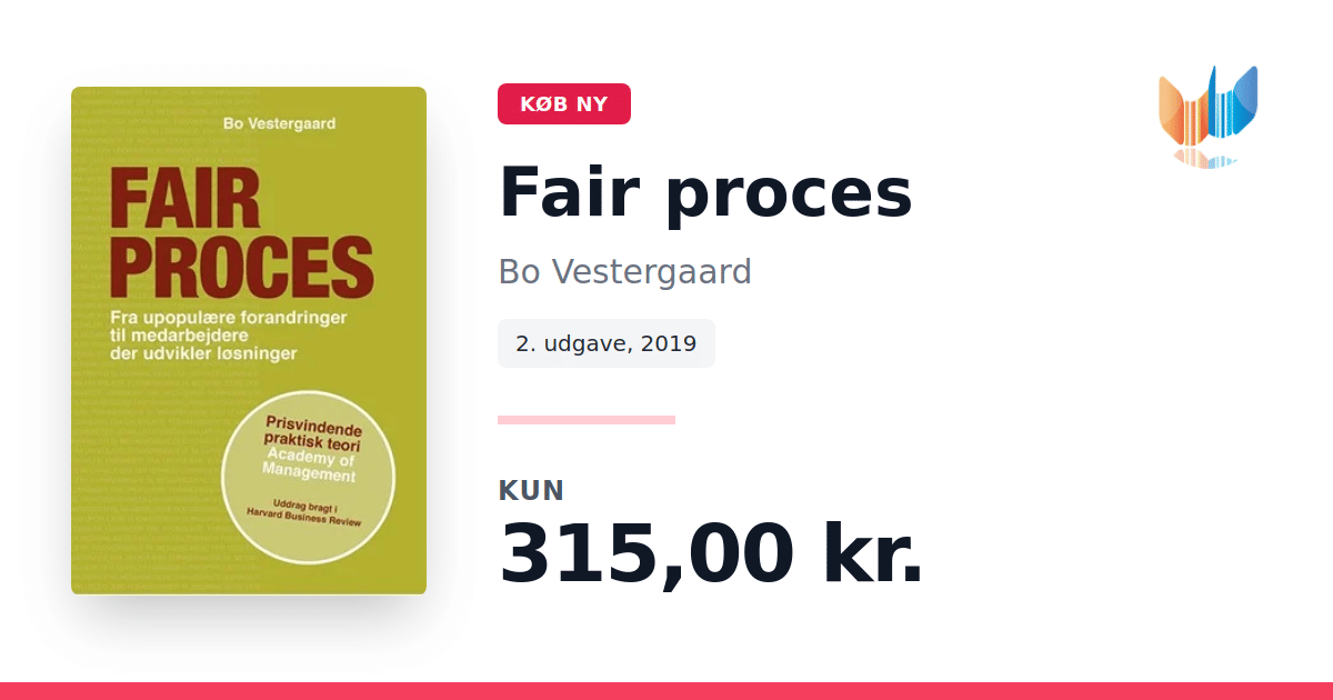 "Fair proces" er Bo Vestergaards prisvindende bog, der sætter fokus på, hvordan inddragelse af medarbejdere i hele forandringsprocessen kan skabe bedre resultater og større ejerskab. Bogen bygger på den seneste forskning og kombinerer teoretiske indsigter med en praktisk tilgang, der gør den særligt relevant for ledere, der ønsker at styre forandringsprocesser effektivt og inkluderende. Med konkrete og anvendelige værktøjer guides læseren til at balancere medarbejderinddragelse med styring, så forandringen udvikles og afprøves i tæt samarbejde. En tidlig udgave af "Fair proces" modtog allerede i 2012 en pris på den internationale forsker-praktiker konference "Academy of Management", og dele af bogen er desuden bragt i Harvard Business Review. Denne kompakte bog på 99 sider tilbyder et solidt fundament og praktiske redskaber, der gør den til en uundværlig ressource for ledere, der ønsker at skabe ejerskab og værdi gennem inddragende forandringsprocesser.