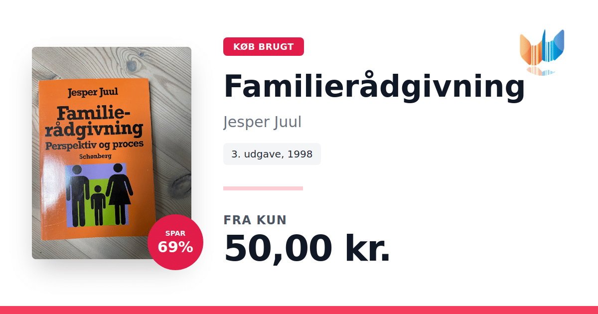 Lige nu kan du købe "Familierådgivning" af Jesper Juul til kun 50,00 kr. Du sparer hele 69% af nyprisen! Bogen du ser her er brugt, og i perfekt stand. Vi har i øjeblikket 2 eksemplarer til salg af "Familierådgivning", så husk at se de forskellige udgaver.
