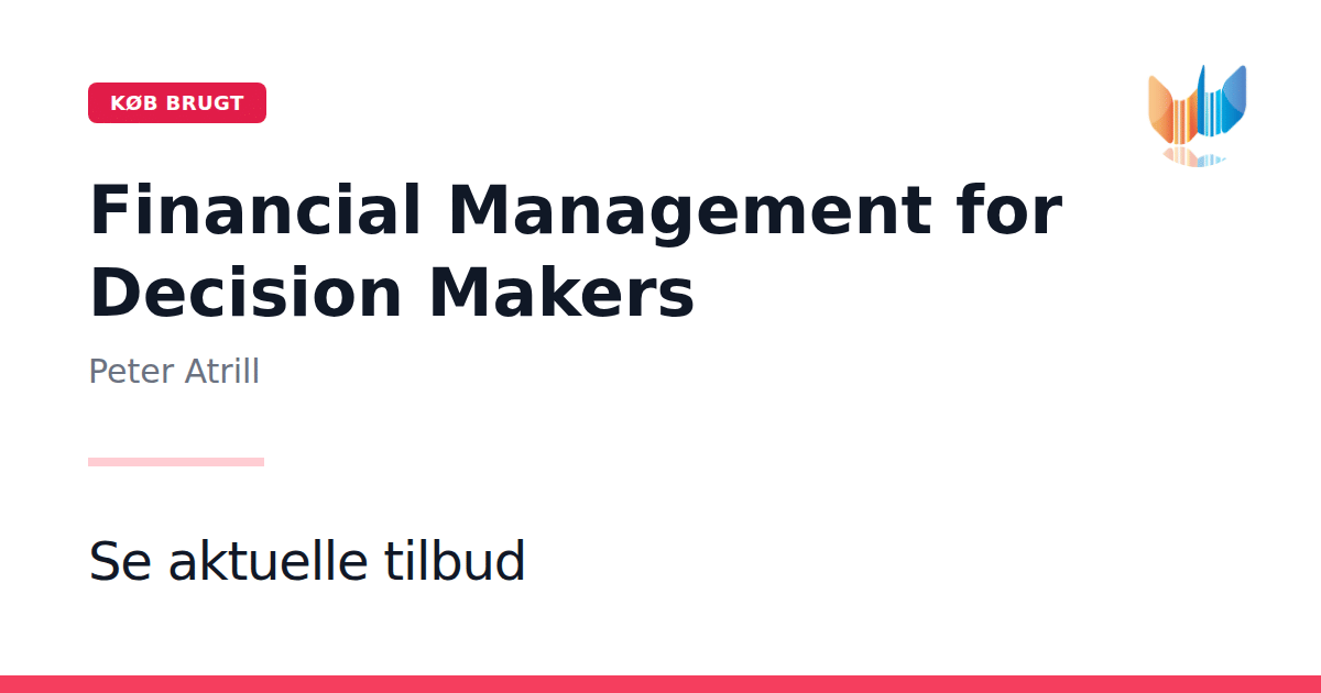 I sin sjette udgave fra 2011 præsenterer Peter Atrill Financial Management for Decision Makers som en let tilgængelig indføring i finansiel styring. Bogen på 640 sider er designet til at klæde læseren på med de grundlæggende principper, uden at forfalde til kompleks terminologi. Gennem en innovativ, open-learning tilgang lægges der vægt på, hvordan finansiel teori omsættes til konkrete beslutninger i virksomheder. Hver forklaring og øvelse er rettet mod at synliggøre sammenhængen mellem tal og strategi, så den studerende hurtigt kan anvende redskaberne i praksis. Målgruppen er alle, der står over for deres første kursus i finansiel ledelse eller virksomhedens finansiering. Uanset om du kommer uden præcis erfaring eller ønsker at styrke dine forudsætninger, giver denne introduktion dig et solidt fundament for at træffe kvalificerede økonomiske beslutninger.
