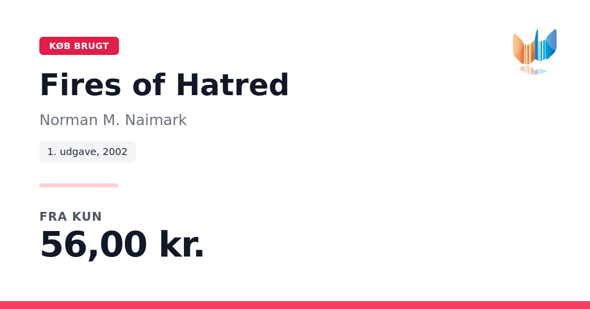 Lige nu kan du købe "Fires of Hatred" af Norman M. Naimark til kun 56,00 kr. Du sparer hele 81% af nyprisen! Bogen du ser her er brugt, og i perfekt stand. Vi har i øjeblikket kun et enkelt eksemplar til salg af "Fires of Hatred", så slå til mens du kan!