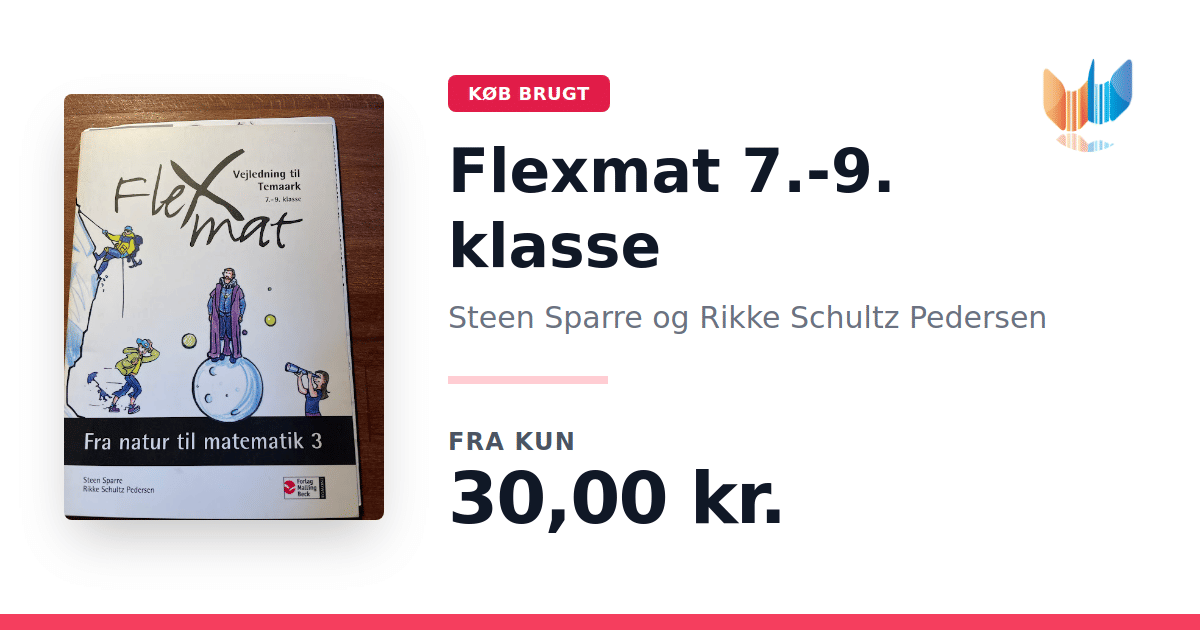 Lige nu kan du købe "Flexmat 7.-9. klasse" af Steen Sparre og Rikke Schultz Pedersen til kun 30,00 kr. Bogen du ser her er brugt, og i perfekt stand. Vi har i øjeblikket kun et enkelt eksemplar til salg af "Flexmat 7.-9. klasse", så slå til mens du kan!