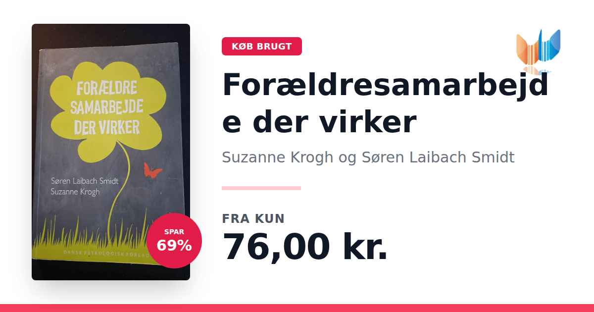 Lige nu kan du købe "Forældresamarbejde der virker" af Suzanne Krogh og Søren Laibach Smidt til kun 76,00 kr. Du sparer hele 69% af nyprisen! Bogen du ser her er brugt, og i god stand. Vi har i øjeblikket kun et enkelt eksemplar til salg af "Forældresamarbejde der virker", så slå til mens du kan!