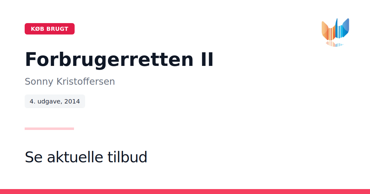 Forbrugerretten II – Den civilretlige forbrugerbeskyttelse er en grundig hånd- og lærebog, der systematisk gennemgår de centrale retsregler inden for den civilretlige forbrugerbeskyttelse. Bogen giver en dybdegående indsigt i forbrugerbeskyttelsen mod urimelige aftalevilkår, forbrugeraftaleloven, købelovens regler, erhvervelse af fast ejendom samt de regler, der gælder for kreditaftaler, betalingstjenester og elektroniske penge. Den fjerde udgave er opdateret med væsentlige ændringer i lovgivningen og praksis, særligt de ændringer, som er sket i perioden 2012 til 2014, herunder implementeringen af Europa-Parlamentets og Rådets direktiv 2011/83/EU om forbrugerrettigheder i en forbrugerretslig kontekst. Opdateringerne omfatter både lovændringer og udviklinger i nævnspraksis og domspraksis, hvilket sikrer en aktuel og relevant fremstilling af emnet. Bogen er udarbejdet med henblik på at fungere som lærebog for studerende på jurastudiet samt som en praktisk håndbog for advokater, jurister og andre fagfolk, der arbejder med eller rådgiver om forbrugerretlige spørgsmål. Forbrugerretten II indgår i en serie om forbrugerbeskyttelse, som dækker både den civil- og den offentlige retlige sektor.