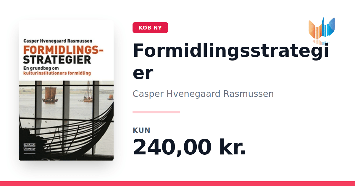 Formidlingsstrategier giver en indsigtsfuld introduktion til, hvordan offentligt støttede kulturinstitutioner arbejder med at formidle kunst og kultur til et bredt publikum. Bogen redegør for tre primære strategier: den afsenderbaserede, hvor institutionerne præsenterer deres eget udvalg af kulturelle tilbud; den modtagerorienterede, som fokuserer på at tilpasse indholdet til brugernes behov og præferencer; og den dialogorienterede, der bygger på interaktion og partnerskab mellem institution og publikum. Med afsæt i kommunikationsteorier udfolder Casper Hvenegaard Rasmussen de muligheder og udfordringer, der følger med hver strategi. Bogen henvender sig primært til studerende og fagfolk, der ønsker en dybere forståelse for, hvordan kulturformidling kan tilpasses og udvikles i en moderne kontekst, men den rummer også relevante perspektiver for dem, der er direkte engageret i den praktiske administration af kulturlivet.