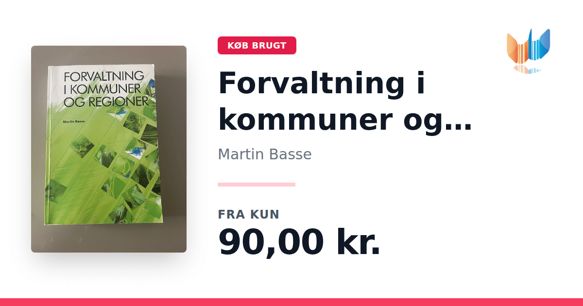 Lige nu kan du købe "Forvaltning i kommuner og regioner" af Martin Basse til kun 90,00 kr. Bogen du ser her er brugt, og i perfekt stand. Vi har i øjeblikket kun et enkelt eksemplar til salg af "Forvaltning i kommuner og regioner", så slå til mens du kan!