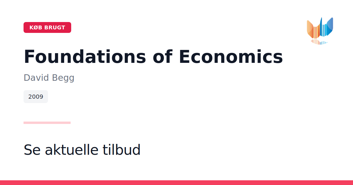 Foundations of Economics af David Begg er en grundlæggende indføring i økonomiens mest centrale principper. Denne paperback-udgave fra 2009 præsenterer fagets kernebegreber i et klart og overskueligt sprog. Bogen kombinerer præcis analyse med illustrative eksempler og fokuserer på emner som udbud og efterspørgsel, markedsstrukturer, prisdannelse og offentligt indgreb. Hvert kapitel knytter teori til praksis og giver læseren et solidt redskab til at forstå økonomiens dynamikker. Med sine 362 sider er Foundations of Economics velegnet til studerende, undervisere og alle, der ønsker en systematisk gennemgang af økonomiens kerneområder. En ideel ressource for dem, der søger en balanceret og anvendelsesorienteret tilgang til faget.