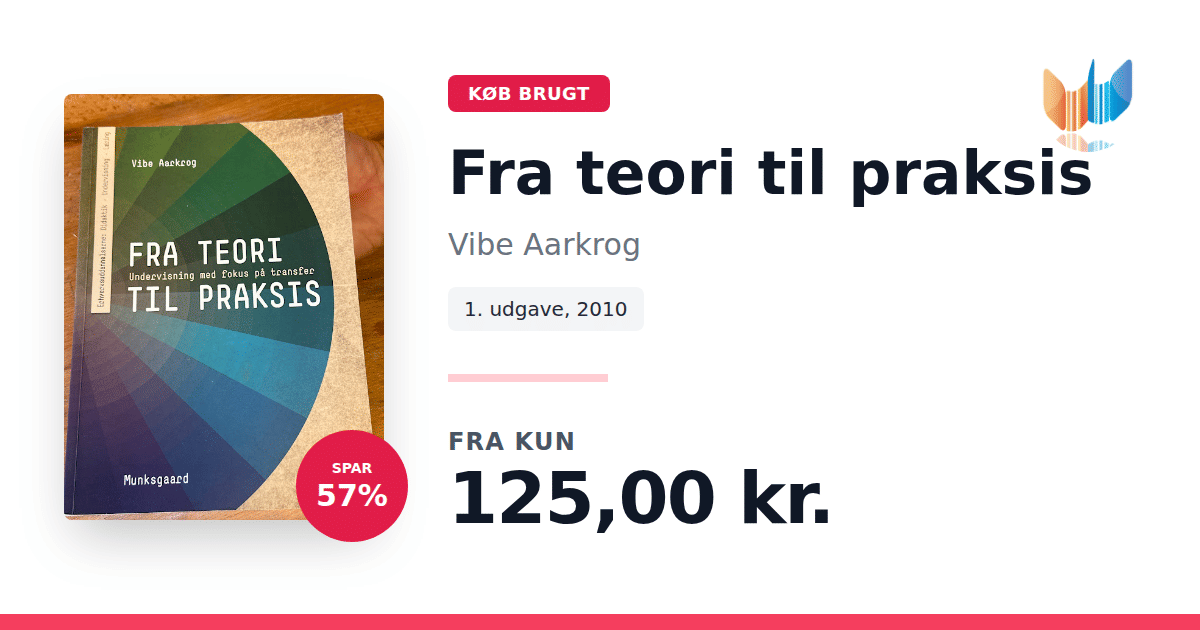 "Fra teori til praksis" af Vibe Aarkrog er en praktisk og anvendelsesorienteret bog, der sætter fokus på, hvordan teori kan omsættes til praksis. Gennem en grundig introduktion til konceptet transfer – evnen til at overføre viden og færdigheder fra et område til et andet – giver bogen både teoretiske indsigter og konkrete redskaber, som kan anvendes til at tilrettelægge undervisningsforløb med udgangspunkt i den enkelte elevs forudsætninger. Bogen retter sig primært mod undervisere på erhvervsuddannelserne, der ønsker at støtte eleverne i at navigere overgangen fra skolens læring til den praktiske virkelighed. Med sine 144 sider tilbyder "Fra teori til praksis" en overskuelig og målrettet tilgang, der hjælper både lærere og elever med at balancere mellem teoretiske koncepter og den praktiske udførelse.