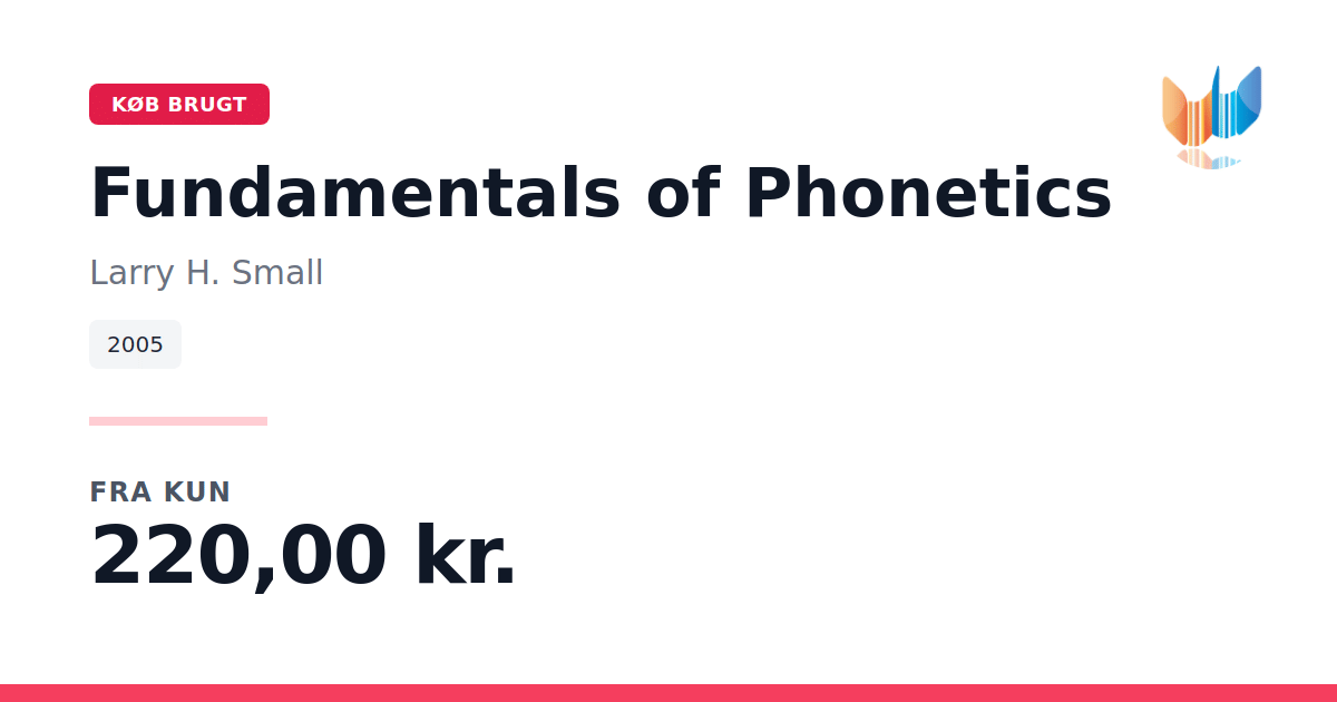 Lige nu kan du købe "Fundamentals of Phonetics" af Larry H. Small til kun 220,00 kr. Bogen du ser her er brugt, og i perfekt stand. Vi har i øjeblikket kun et enkelt eksemplar til salg af "Fundamentals of Phonetics", så slå til mens du kan!