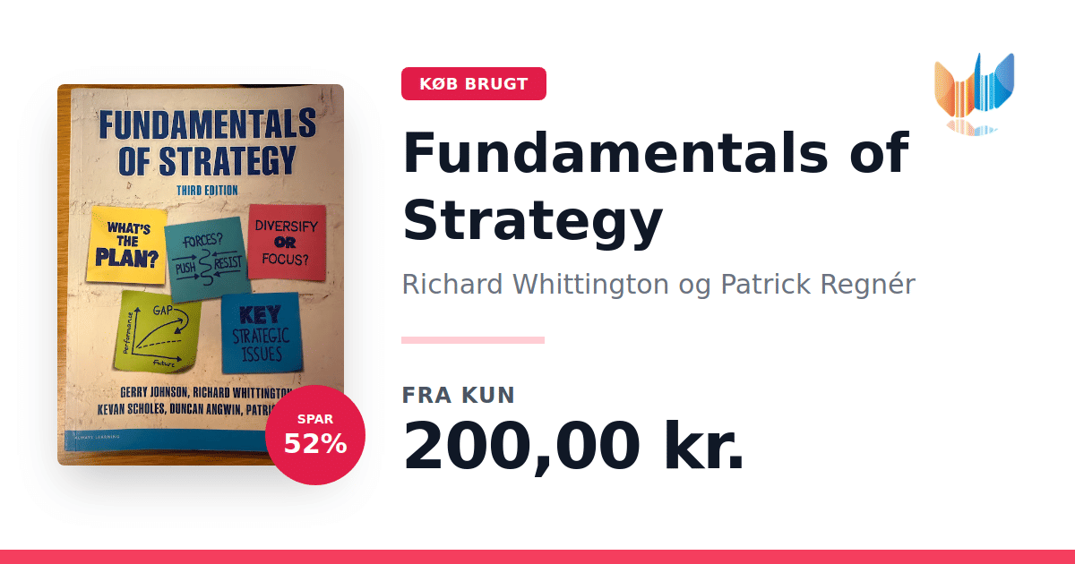 Mere end en million studerende og erhvervsledere har allerede benyttet sig af det anerkendte Exploring Strategy, og nu har forfatterne Gerry Johnson, Richard Whittington, Kevan Scholes, Patrick Regnèr og Duncan Angwin destilleret kernen af deres arbejde i Fundamentals of Strategy. Denne tredje udgave giver et skarpt, men alligevel fyldestgørende overblik over centrale strategimodeller, analyser og beslutningsværktøjer. Med sine 304 sider i praktisk paperbackformat er Fundamentals of Strategy særligt velegnet til kortere uddannelsesforløb, ledelseskurser og studerende, der ønsker en koncentreret introduktion til strategiske processer. Sproget er klart og tilgængeligt, og de gennemgående eksempler gør det nemt at omsætte teori til praksis.