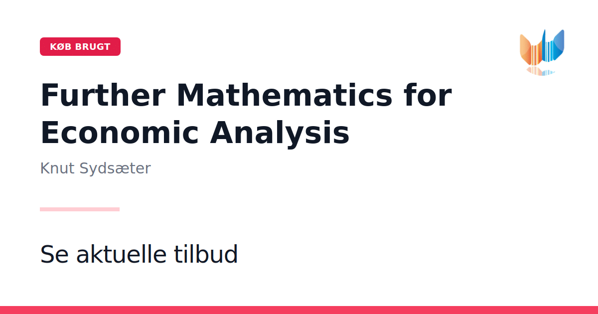 Further Mathematics for Economic Analysis udgivet af Prentice Hall i 2005 som paperback på 610 sider er en direkte fortsættelse af det anerkendte Essential Mathematics for Economic Analysis. Denne bog henvender sig til avancerede bachelor- og kandidatstuderende i økonomi, der har behov for mere omfattende matematiske redskaber end dem, der normalt dækkes på grundkurser. Bogen introducerer systematisk calculus of variations, optimal kontrolteori og dynamisk programmering, samtidig med at den bringer læseren sikkert igennem en grundig repetition og udvidelse af elementær matrixalgebra, multivariable differentialregning og statisk optimering. De senere kapitler omfatter multipelintegration samt ordinære differential- og differensligninger, herunder systemer af sådanne ligninger. Yderligere kapitler præsenterer grundlæggende topologi i euklidisk rum, korrespondancer og fikspunktssætninger, der er uundværlige i moderne økonomisk teori. Hvert hovedafsnit ledsages af udførlige eksempler og øvelser, der spænder fra lette til krævende problemstillinger, og løsninger til de ulige numre sikrer, at man kan følge sin egen progression. Forfatterne Sydsæter, Hammond, Seierstad og Strøm bringer deres mangeårige undervisningserfaring i matematik for økonomer i spil og tilbyder en klar og engagerende skrivestil, hvor matematisk stringens aldrig går på kompromis med forståelsen.
