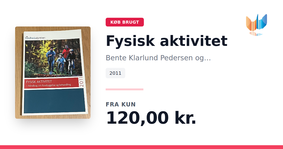 Lige nu kan du købe "Fysisk aktivitet" af Bente Klarlund Pedersen og Sundhedsstyrelsen til kun 120,00 kr. Bogen du ser her er brugt, og i perfekt stand. Vi har i øjeblikket 2 eksemplarer til salg af "Fysisk aktivitet", så husk at se de forskellige udgaver.