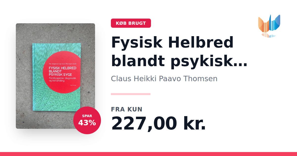Lige nu kan du købe "Fysisk Helbred blandt psykisk syge" af Claus Heikki Paavo Thomsen til kun 227,00 kr. Du sparer hele 43% af nyprisen! Bogen du ser her er brugt, og i perfekt stand. Vi har i øjeblikket kun et enkelt eksemplar til salg af "Fysisk Helbred blandt psykisk syge", så slå til mens du kan!