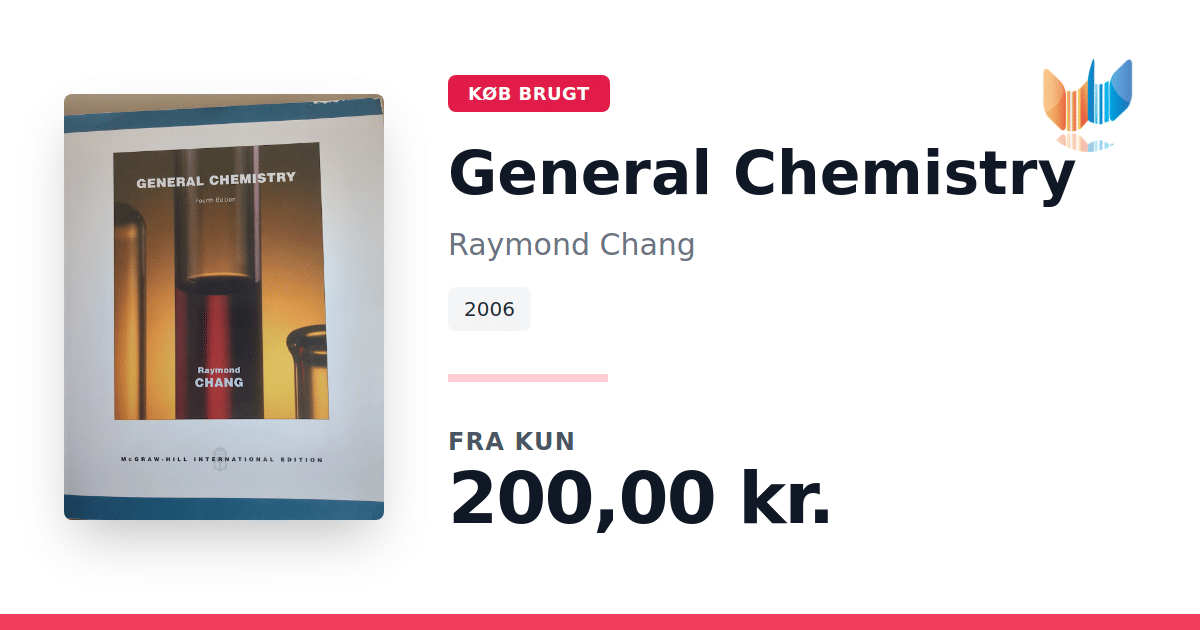Lige nu kan du købe "General Chemistry" af Raymond Chang til kun 200,00 kr. Bogen du ser her er brugt, og i god stand. Vi har i øjeblikket kun et enkelt eksemplar til salg af "General Chemistry", så slå til mens du kan!