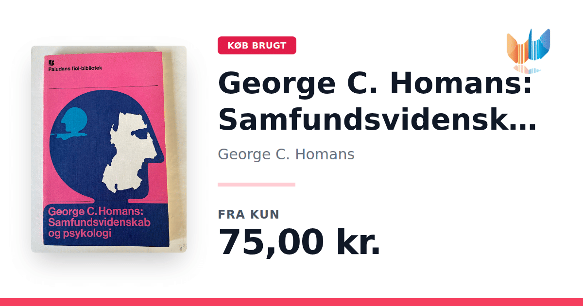 Lige nu kan du købe "George C. Homans: Samfundsvidenskab og psykologi" af George C. Homans til kun 75,00 kr. Bogen du ser her er brugt, og i perfekt stand. Vi har i øjeblikket kun et enkelt eksemplar til salg af "George C. Homans: Samfundsvidenskab og psykologi", så slå til mens du kan!