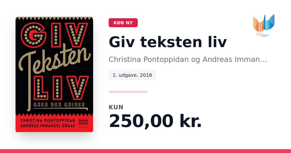 Giv teksten liv er en inspirerende guide til alle, der ønsker at forvandle deres ord til levende tekster. Christina Pontoppidan og Andreas Immanuel Graae fører læseren gennem tre akter, hvor hver akt består af tre enkle greb, der sammen skaber en klar og medrivende tekst. Bogen fokuserer på at give tekstens fokus liv, at forme dens struktur og at forfine formuleringerne. Gennem praktiske øvelser og illustrative eksempler lærer skribenten at sætte ansigt på stoffet, udforske usædvanlige fragmenter og eksperimentere med genrekombinationer, metaforer, rim og rytme. Med Giv teksten liv får alle – uanset om man er akademiker, journalist, studerende eller blogger – værktøjerne til at engagere læseren og skabe en dynamisk læseoplevelse.