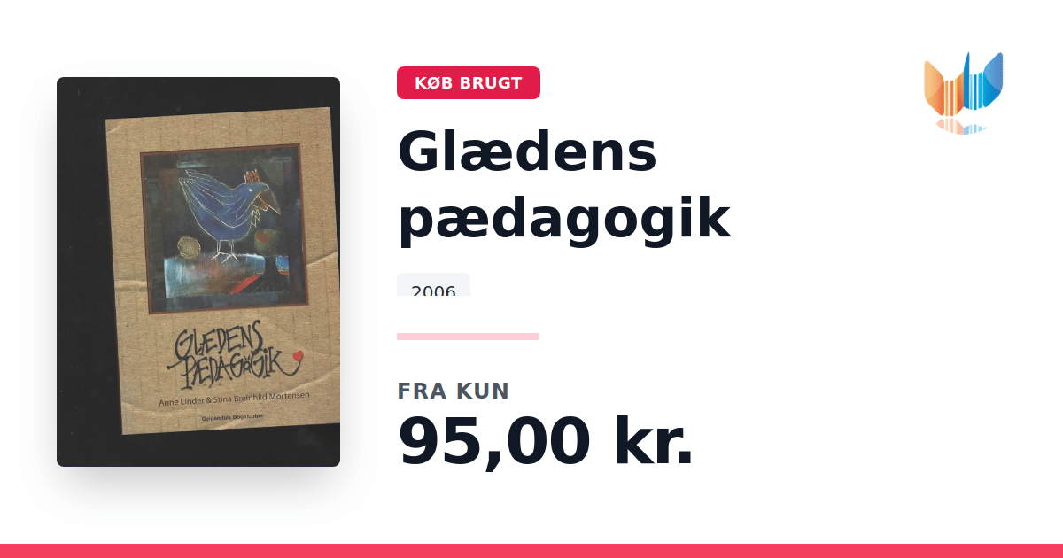 Lige nu kan du købe "Glædens pædagogik" til kun 95,00 kr. Bogen du ser her er brugt, og i perfekt stand. Vi har i øjeblikket 2 eksemplarer til salg af "Glædens pædagogik", så husk at se de forskellige udgaver.