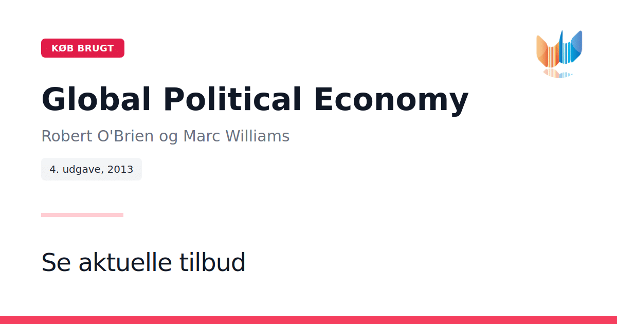 Global Political Economy: Evolution and Dynamics af Robert O’Brien og Marc Williams giver en indsigtsfuld fremstilling af, hvordan en verdensomspændende økonomi tog form fra 1500-tallet og frem til i dag. Bogen tegner et bredt historisk panorama, der sætter udviklingen i et sammenhængende tidsmæssigt perspektiv. Med fokus på både klassiske og moderne teoretiske rammer præsenterer forfatterne en systematisk gennemgang af international politisk økonomi. Her udforskes centrale begreber som institutioners rolle, magtforhold mellem stater, global handel og finansielle strømme. Evolutionen af globale økonomiske dynamikker belyses gennem eksempler, der illustrerer skiftende politiske og økonomiske landskaber.