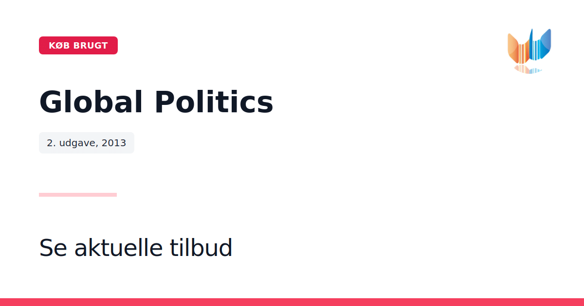 Global Politics: A New Introduction af Jenny Edkins (2013) tilbyder en nyskabende og kritisk indgang til verdenspolitik. Bogen imødekommer de emner, studerende finder mest engagerende, og fører læseren gennem centrale spørgsmål og teorier med en reflekterende tilgang til nutidens globale udfordringer. Hele teksten er opdateret med nye kapitler om miljøpolitik, nationalisme, internettets betydning, demokratisering, kolonialisme, finanskrise, politisk vold og menneskerettigheder. Hvert tema belyses med konkrete eksempler, der skaber en levende kobling mellem teori og praksis. Forfatteren udforsker alt fra krig, fredsopbygning og terrorisme til sikkerhed, fattigdom, udvikling og postkolonial arv. Kapitelstrukturen er konsistent med et centralt spørgsmål, et illustrativt case-studie, opsummerende svar og refleksioner over de overordnede problemstillinger. Ved at integrere teoretiske perspektiver fra internationale relationer, politisk teori, postkoloniale studier, sociologi, geografi, fredsstudier og udviklingsforskning giver dette tværfaglige værk et omfattende billede af global politik. Det er et uundværligt grundlag for alle, der ønsker en dybdegående forståelse af det moderne politiske landskab.