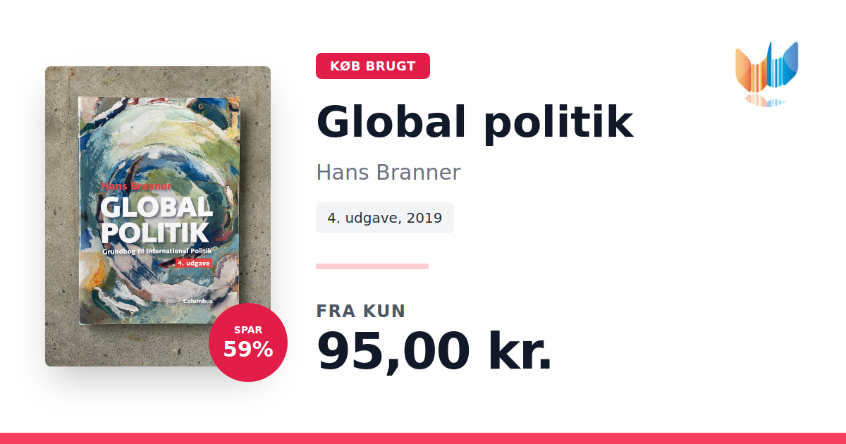 Lige nu kan du købe "Global politik" af Hans Branner til kun 95,00 kr. Du sparer hele 59% af nyprisen! Bogen du ser her er brugt, og i perfekt stand. Vi har i øjeblikket 3 eksemplarer til salg af "Global politik", så husk at se de forskellige udgaver.
