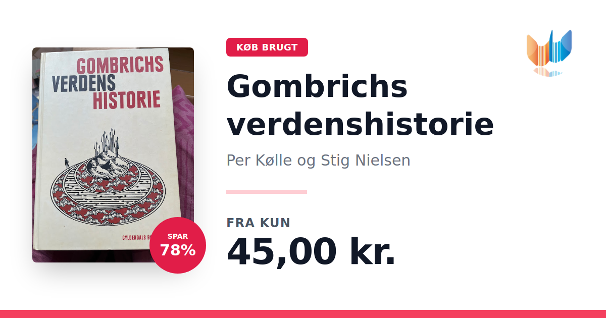 Lige nu kan du købe "Gombrichs verdenshistorie" af Per Kølle og Stig Nielsen til kun 45,00 kr. Du sparer hele 78% af nyprisen! Bogen du ser her er brugt, og i god stand. Vi har i øjeblikket kun et enkelt eksemplar til salg af "Gombrichs verdenshistorie", så slå til mens du kan!
