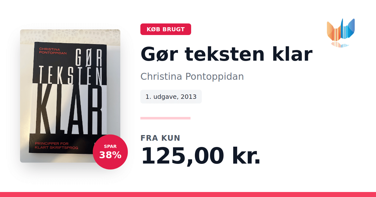 Christina Pontoppidans "Gør teksten klar" tilbyder en struktureret tilgang til skriftsprog og hjælper læseren med at mestre tekstens opbygning. Bogen fører gennem hele skriveprocessen og giver konkrete, trin-for-trin-anvisninger, der gør det nemt at følge med – fra de grundlæggende overvejelser omkring tekstens formål til de finere detaljer i tekstens opbygning. Med fokus på både teksten som helhed og de enkelte sætningers opbygning, afslører bogen de centrale principper for et klart og præcist sprog. Uanset om man skriver i arbejds-, studie- eller fritidssammenhæng, bliver læserens forståelse for skrivning styrket gennem praktiske råd og systematisk formidling af skrivehåndværket.