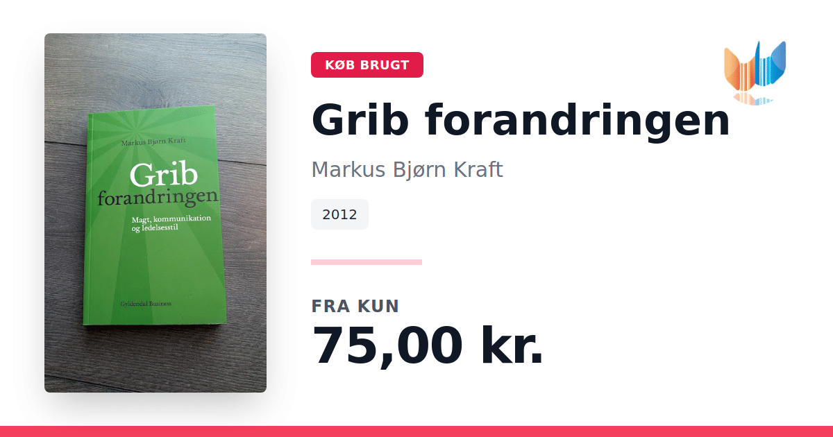 Lige nu kan du købe "Grib forandringen" af Markus Bjørn Kraft til kun 75,00 kr. Bogen du ser her er brugt, og i perfekt stand. Vi har i øjeblikket kun et enkelt eksemplar til salg af "Grib forandringen", så slå til mens du kan!
