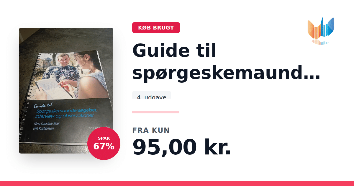 Lige nu kan du købe "Guide til spørgeskemaundersøgelser, interview og observationer" til kun 95,00 kr. Du sparer hele 67% af nyprisen! Bogen du ser her er brugt, og i perfekt stand. Vi har i øjeblikket kun et enkelt eksemplar til salg af "Guide til spørgeskemaundersøgelser, interview og observationer", så slå til mens du kan!