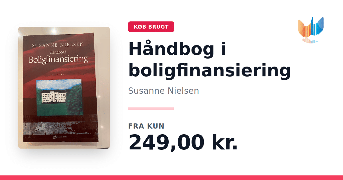 Lige nu kan du købe "Håndbog i boligfinansiering" af Susanne Nielsen til kun 249,00 kr. Bogen du ser her er brugt, og i god stand. Vi har i øjeblikket 2 eksemplarer til salg af "Håndbog i boligfinansiering", så husk at se de forskellige udgaver.