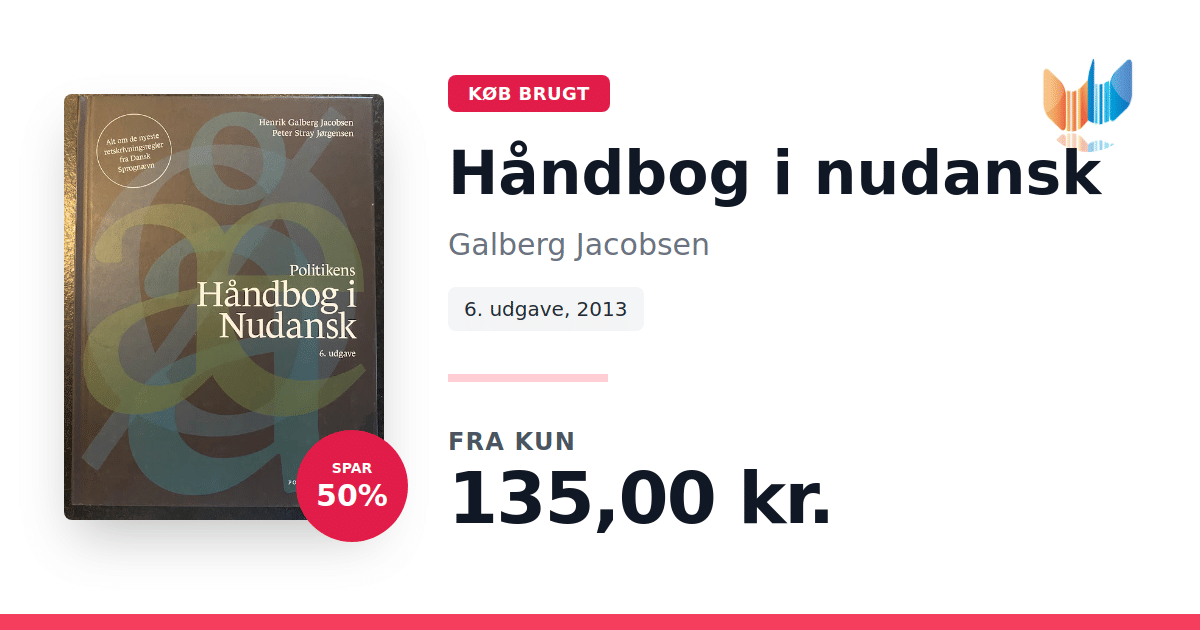 Håndbog i Nudansk er et uundværligt opslagsværk for alle, der ønsker at mestre det danske sprog i enhver sammenhæng. Bogen tilbyder klare svar og vejledning til både skriftlig og mundtlig kommunikation og er derfor et ideelt redskab for professionelle, undervisere og privatpersoner. I denne reviderede 6. udgave, udgivet i 2013 af Politikens Forlag og skrevet af Galberg Jacobsen og Stray Jørgensen, finder du en grundig opdatering i overensstemmelse med de nye retskrivningsregler fra Dansk Sprognævn 2012. Med sine 696 sider dykker bogen ned i sprogets mange facetter og sikrer, at dansk sprogbrug altid lever op til moderne standarder.