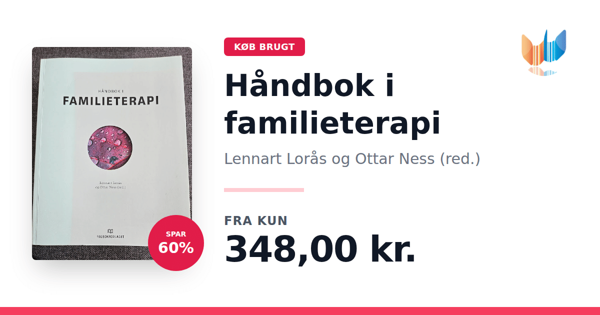 Lige nu kan du købe "Håndbok i familieterapi" af Lennart Lorås og Ottar Ness (red.) til kun 348,00 kr. Du sparer hele 60% af nyprisen! Bogen du ser her er brugt, og i god stand. Vi har i øjeblikket kun et enkelt eksemplar til salg af "Håndbok i familieterapi", så slå til mens du kan!