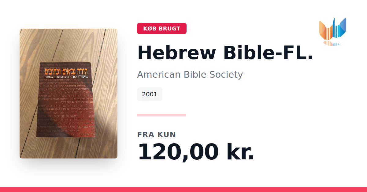 Lige nu kan du købe "Hebrew Bible-FL." af American Bible Society til kun 120,00 kr. Bogen du ser her er brugt, og i god stand. Vi har i øjeblikket kun et enkelt eksemplar til salg af "Hebrew Bible-FL.", så slå til mens du kan!