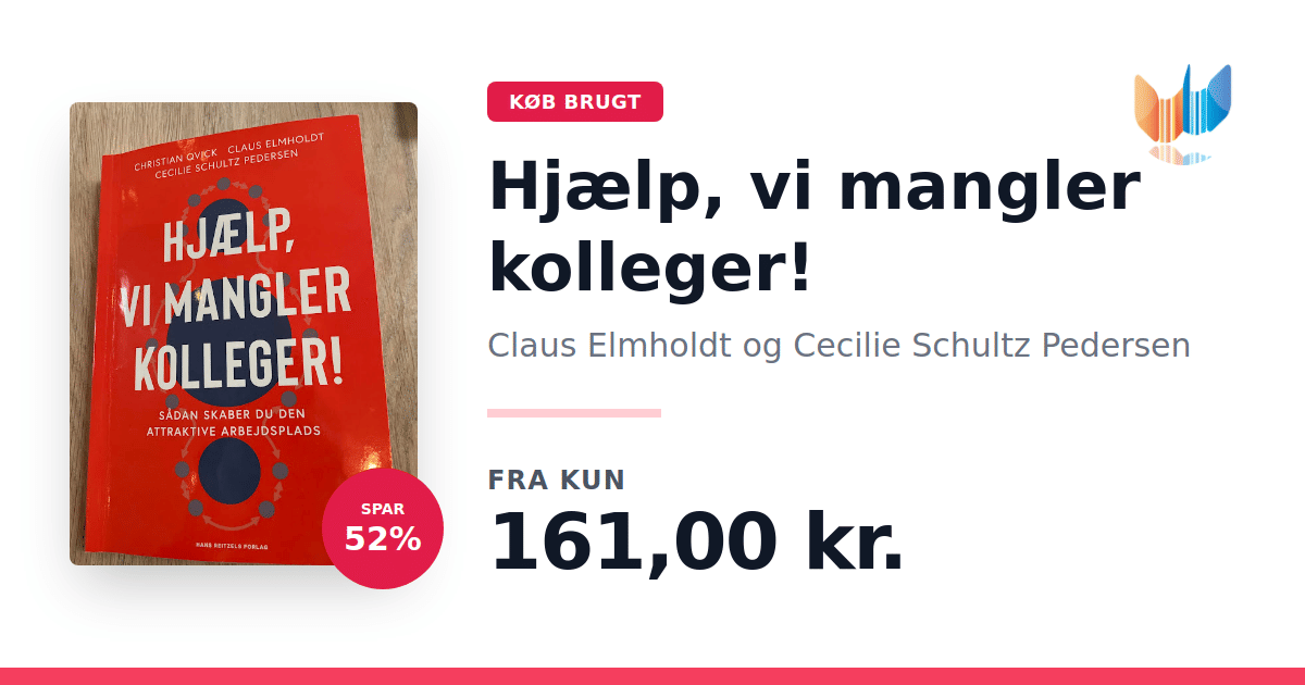 Lige nu kan du købe "Hjælp, vi mangler kolleger!" af Claus Elmholdt og Cecilie Schultz Pedersen til kun 161,00 kr. Du sparer hele 52% af nyprisen! Bogen du ser her er brugt, og i god stand. Vi har i øjeblikket kun et enkelt eksemplar til salg af "Hjælp, vi mangler kolleger!", så slå til mens du kan!