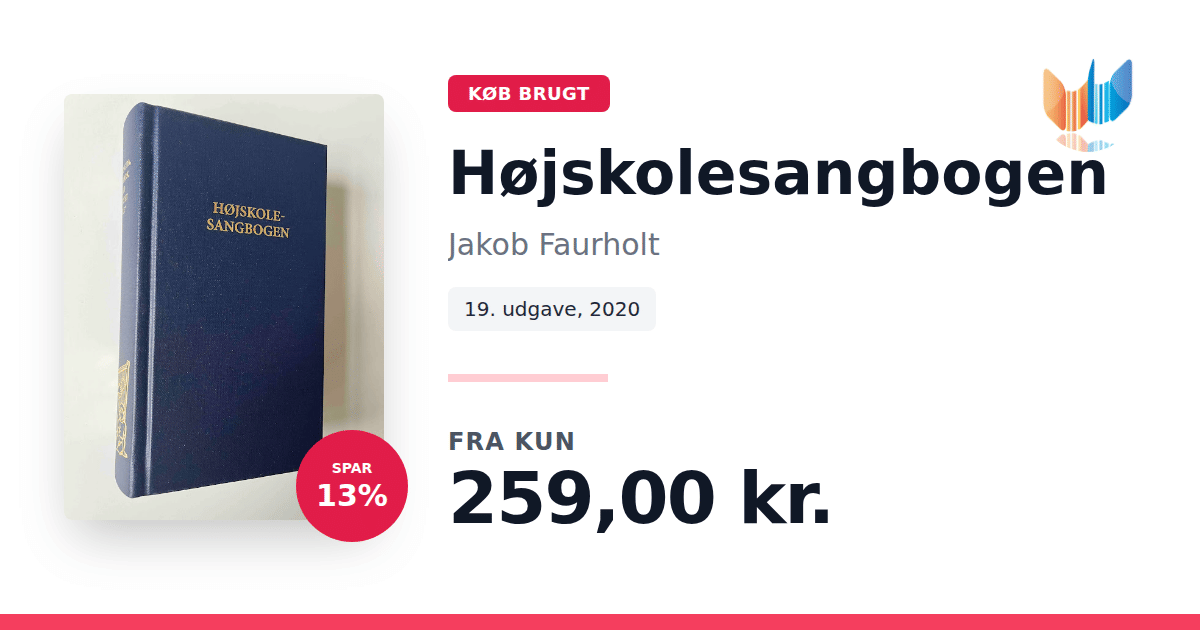 Lige nu kan du købe "Højskolesangbogen" af Jakob Faurholt til kun 259,00 kr. Du sparer hele 13% af nyprisen! Bogen du ser her er brugt, og i perfekt stand. Vi har i øjeblikket kun et enkelt eksemplar til salg af "Højskolesangbogen", så slå til mens du kan!